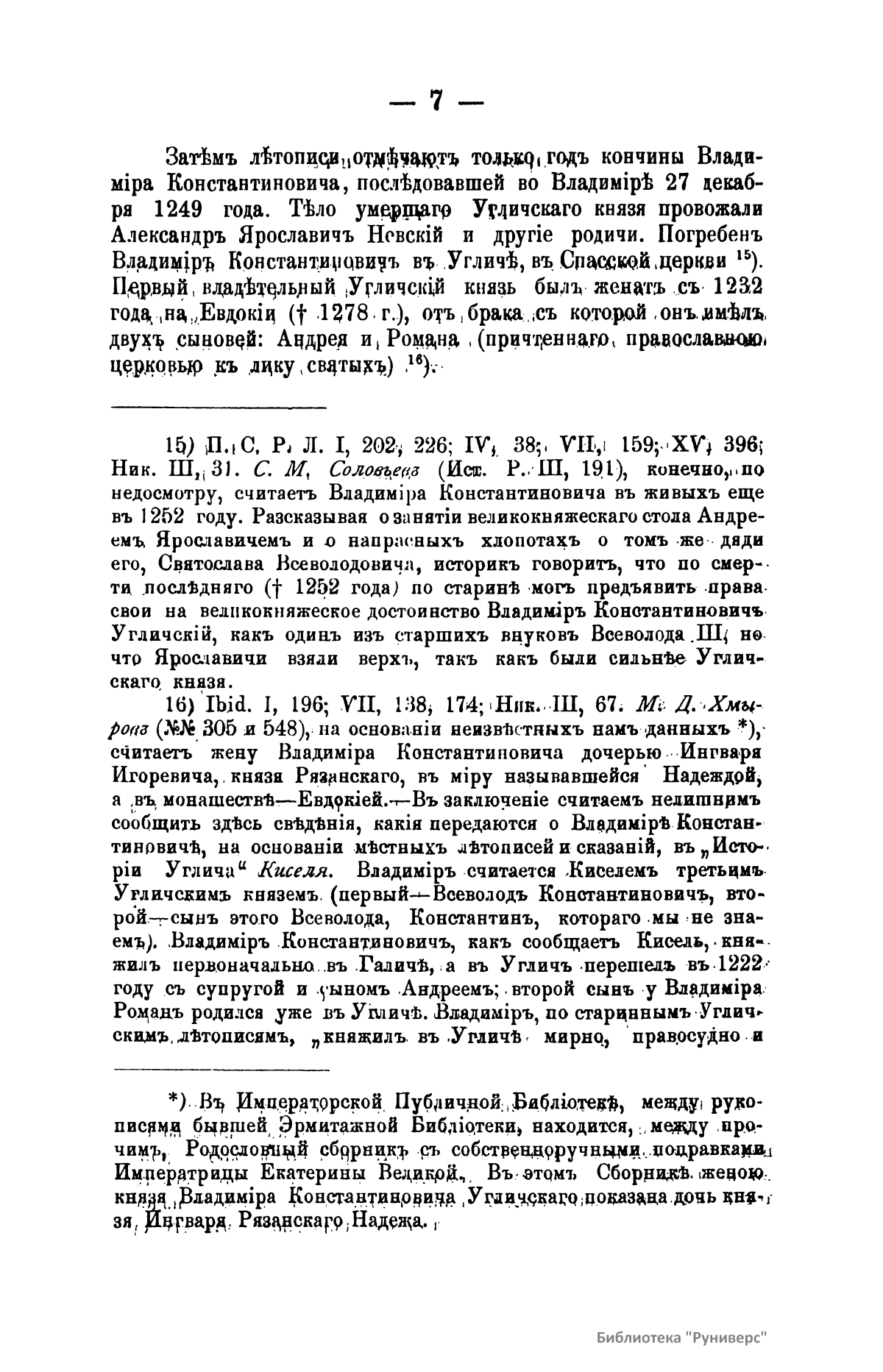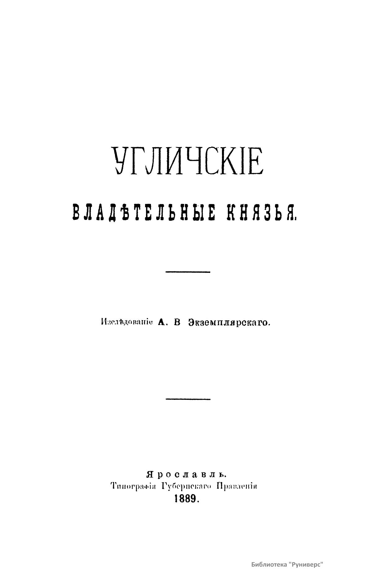 Экземплярский, историк и специалист в древней генеалогии, продолжает составление списков владетельных князей разных уделов Руси.