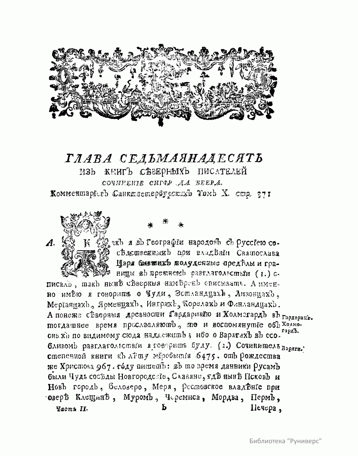 Исторiя Россiйская съ самыхъ древнѣйших временъ неусыпными трудами черезъ тритцать лѣтъ собранная и описанная покойным тайнымъ советникомъ и астраханскимъ губернаторомъ, Васильемъ Никитичемъ Татищевымъ. Книга первая. Часть вторая