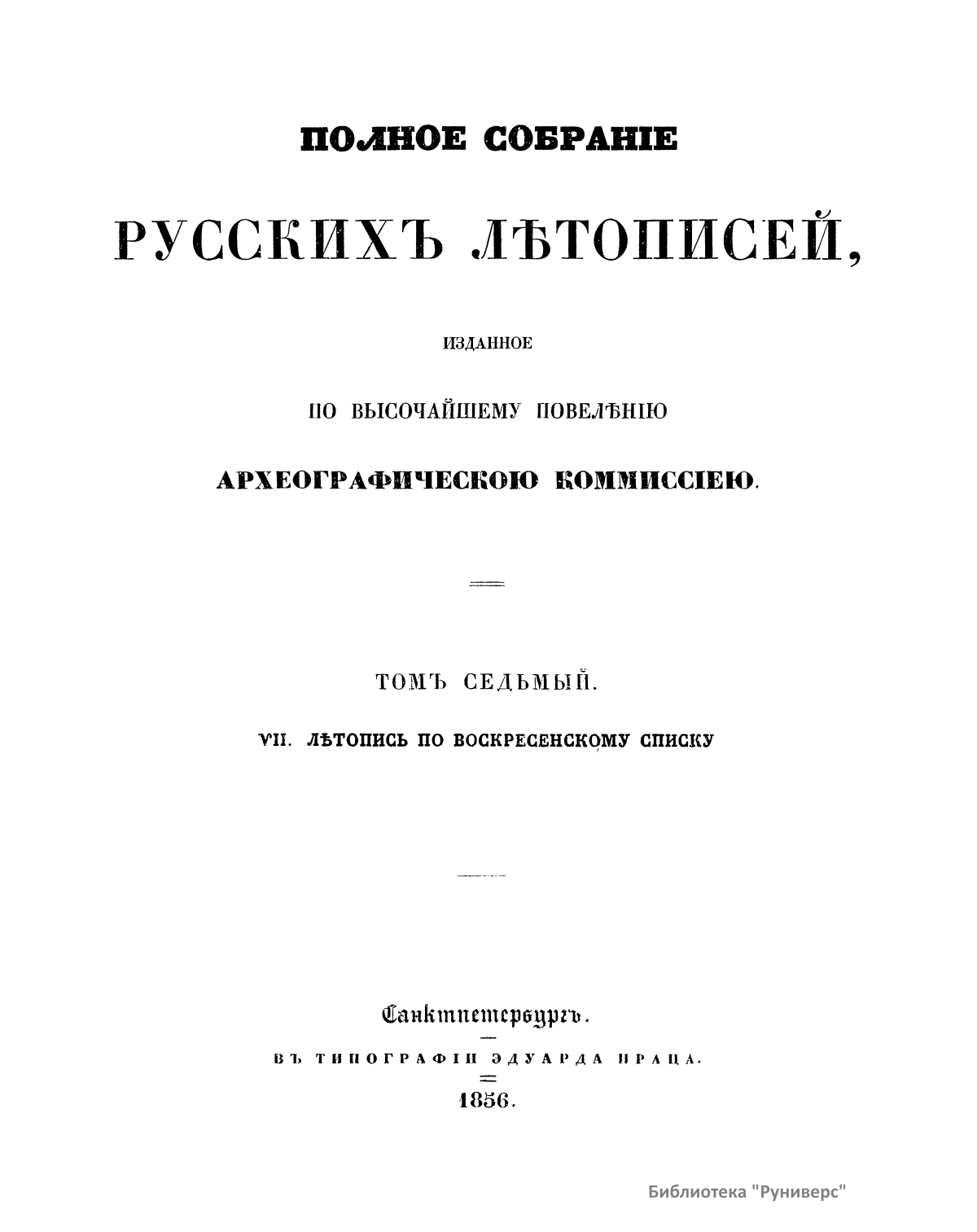 Полное собрание русских летописей. Том седьмой. VII. Летопись по воскресенскому списку
