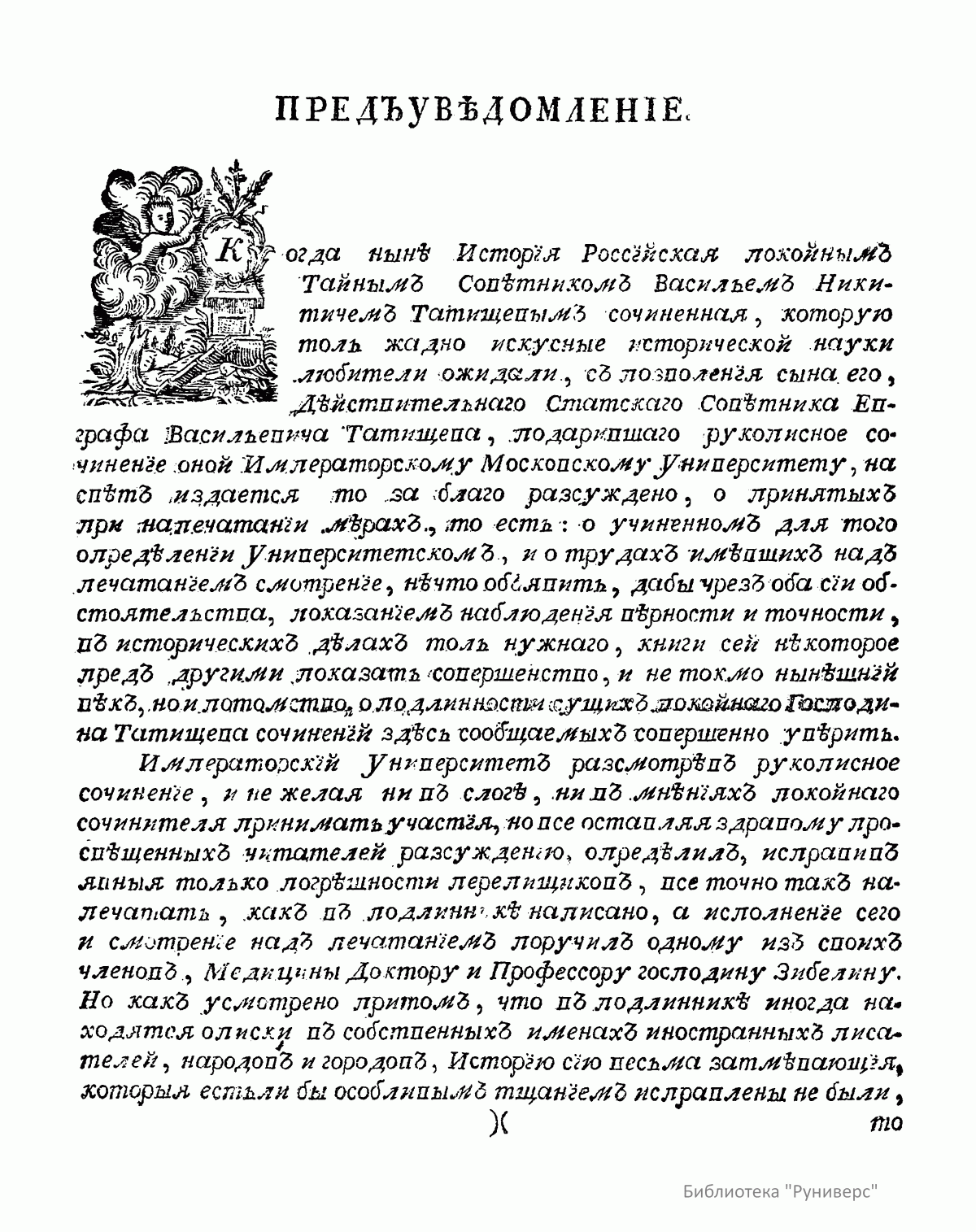 Исторiя Россiйская съ самыхъ древнѣйших временъ неусыпными трудами черезъ тритцать лѣтъ собранная и описанная покойным тайнымъ советникомъ и астраханскимъ губернаторомъ, Васильемъ Никитичемъ Татищевымъ