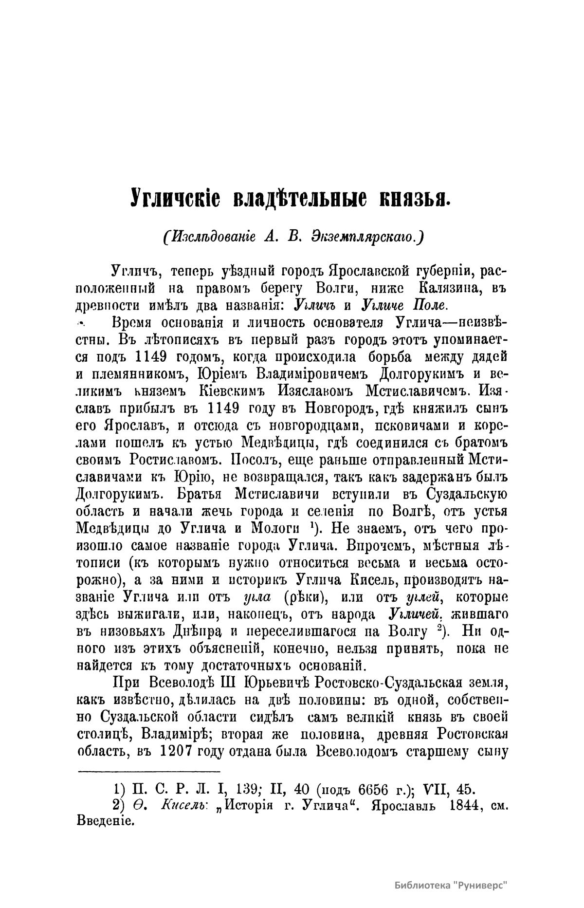Экземплярский, историк и специалист в древней генеалогии, продолжает составление списков владетельных князей разных уделов Руси.