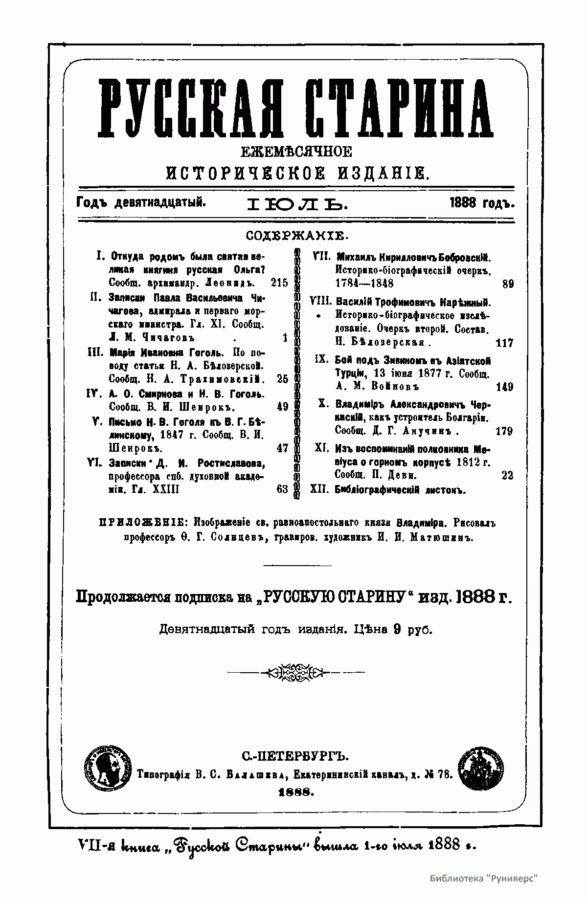 Русская cтарина. Том LIX. 1888. Выпуски 7-9