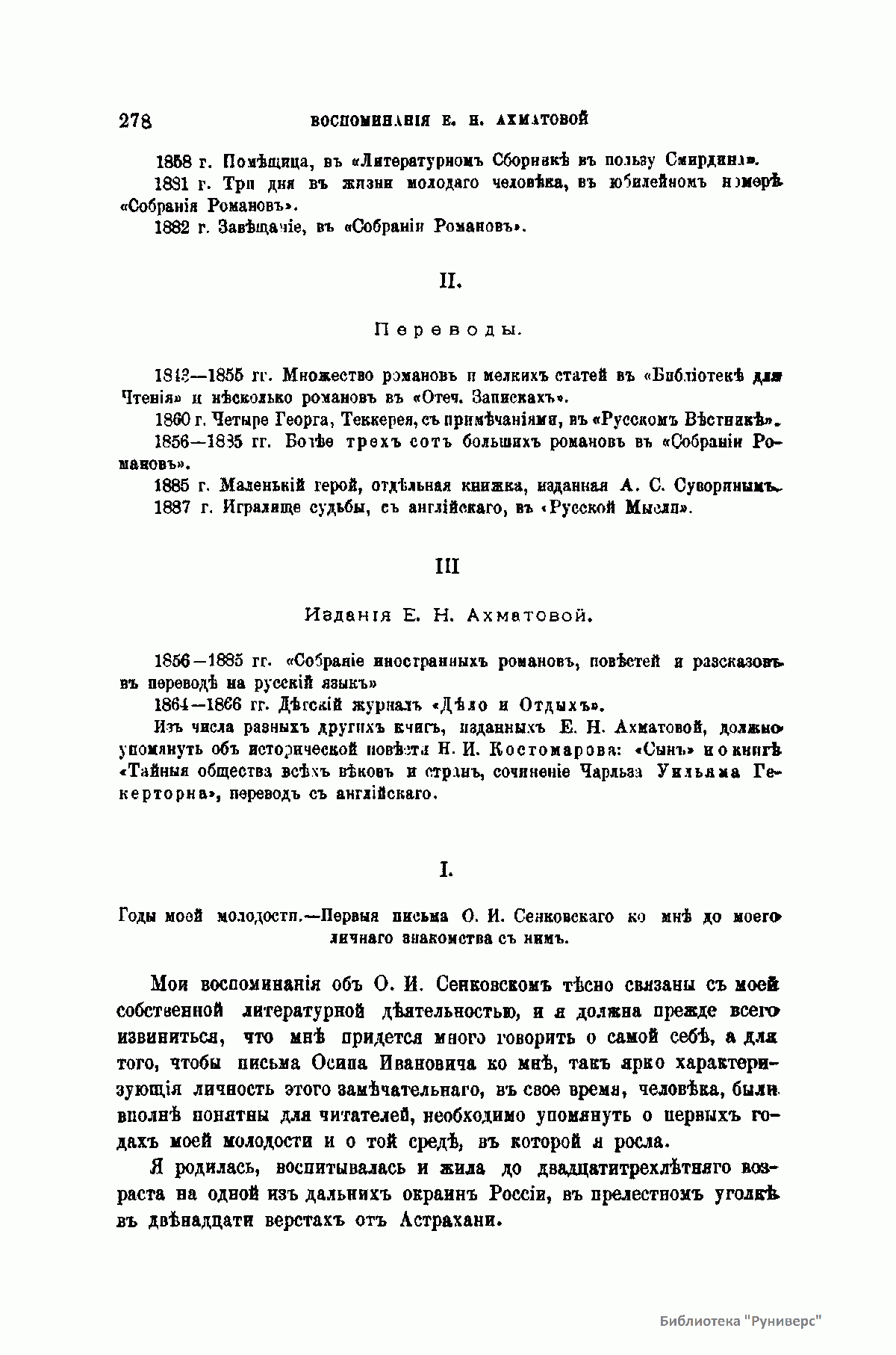 Крупным вкладом в журнал явились записки и дневник А. В. Никитенко (1888-1892), а также записки Н. И. Пирогова (1884-1885, 1887).