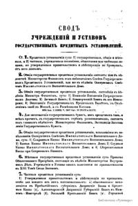 Сводъ законовъ Россiйской имперiи. Томъ одиннадцатый. Часть II. Уставы кредитный, торговый, о промышленности фабричной и заводской, и уставъ ремесленный