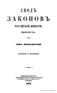 Свод законов Российской империи. Том пятнадцатый. Законы уголовные