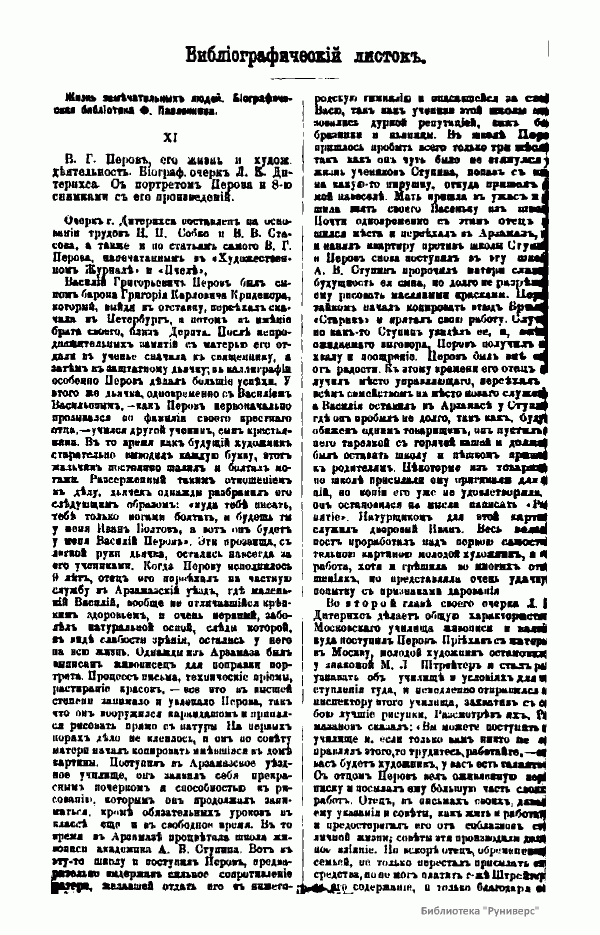 К истории искусства относятся записки М. И. Глинки (1870), воспоминания А. Г. Рубинштейна (1889) и известного архитектора А. Л. Витберга (1872), автобиографии И. П. Пожалостина (1881) и Л. А. Серякова (1875), записки И. К. Айвазовского (1878, 1881), Ф. И. Иордана (1891), Ф. Г. Солнцева (1876), воспоминания В. В. Самойлова (1875), П. А. Каратыгина (1872-1877, 1879), Л. Л. Леонидова (1886, 1888), записки Л. П. Никулиной-Косицкой (1878) и др.