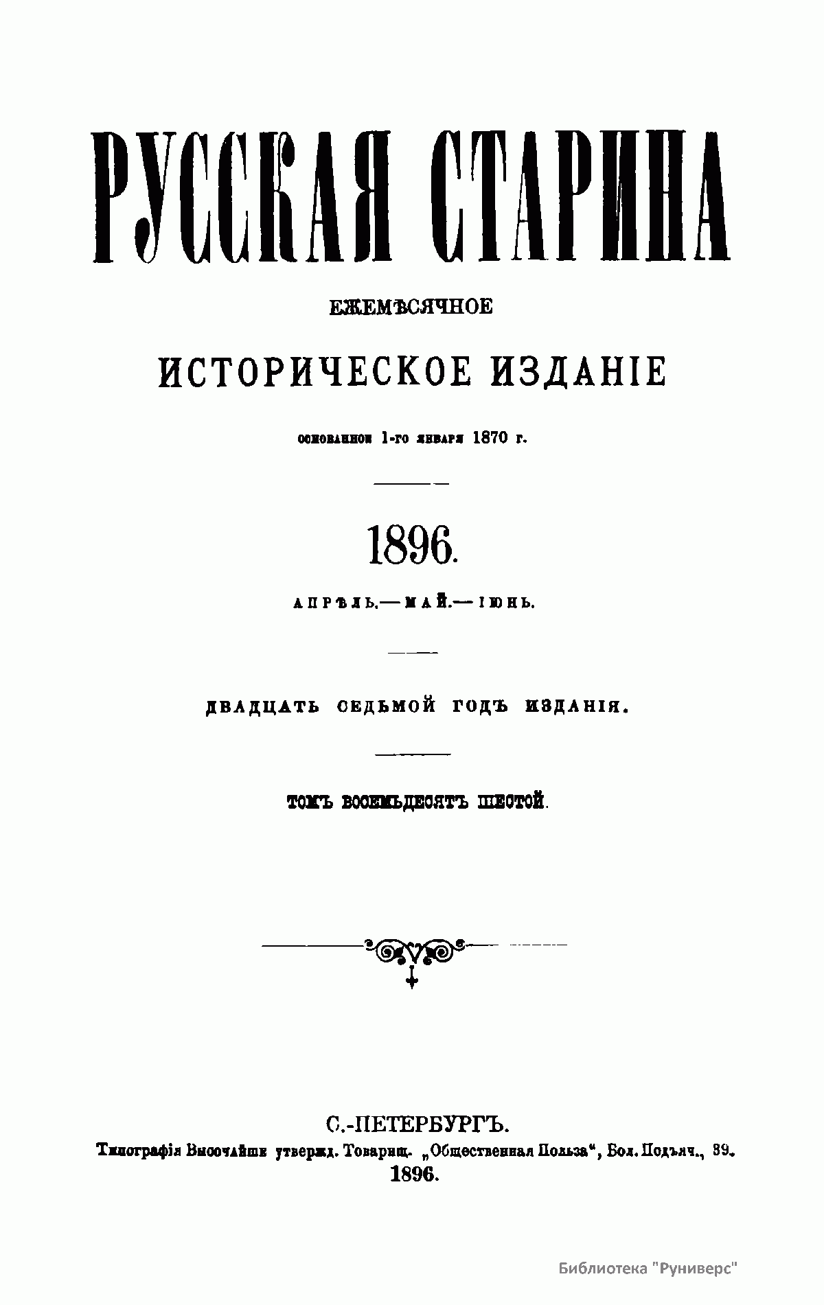 Русская старина. Том LXXXVI. 1896. Выпуски 4-6