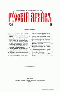 Русскiй архивъ. Историко-литературный сборникъ. 1879. Выпуски 9-12