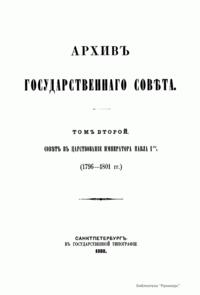 Архив Государственного совета. Том второй. Совет в царствование императора Павла I. 1796-1801 гг.