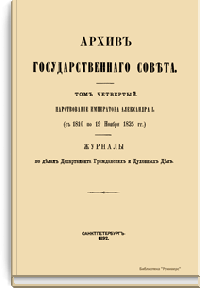 Архив Государственного совета. Том четвертый. Совет в царствование императора Александра I. С 1810 по 19 ноября 1825 г. Журналы по делам департамента гражданских и духовных дел. Часть первая, вторая