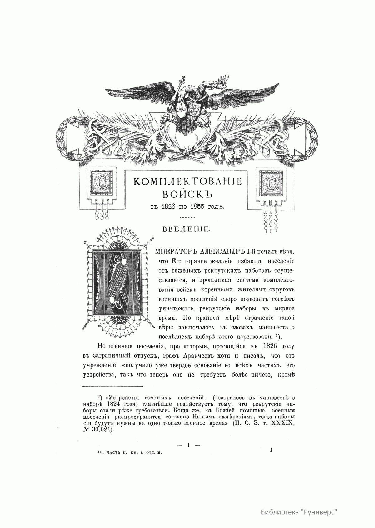 Столѣтiе военнаго министерства. 1802-1902. Главный штабъ. Историческiй очеркъ. Комплектованiе войскъ въ царствованiе Императора Николая I