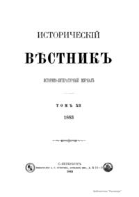 «Исторический вестник» - русский ежемесячный историко-литературный журнал. Издавался в Санкт-Петербурге с 1880-го по 1917 г. Журнал был основан А.С. Сувориным и С.Н. Шубинским с целью «знакомить читателей в живой, общедоступной форме с современным состоянием исторической науки и литературы в России и Европе». Вышло 150 тт. Каждый том состоял из трёх ежемесячных выпусков, имел свою нумерацию страниц, оглавление, список иллюстраций. Журнал приобрёл устойчивую популярность среди читателей, заняв прочное место в «триумвирате» русских исторических журналов наряду с «Русским архивом» и «Русской стариной». опережая их по количеству подписчиков. Отличием «Исторического вестника» было то, что он не помещал на своих страницах необработанных, сырых материалов. С другой стороны, журнал приближался по своему типу к журналам общелитературного образца, сочетая в себе коммерческий успех и доступное изложение материала.