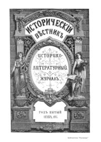 «Исторический вестник» - русский ежемесячный историко-литературный журнал. Издавался в Санкт-Петербурге с 1880-го по 1917 г. Журнал был основан А.С. Сувориным и С.Н. Шубинским с целью «знакомить читателей в живой, общедоступной форме с современным состоянием исторической науки и литературы в России и Европе». Вышло 150 тт. Каждый том состоял из трёх ежемесячных выпусков, имел свою нумерацию страниц, оглавление, список иллюстраций. Журнал приобрёл устойчивую популярность среди читателей, заняв прочное место в «триумвирате» русских исторических журналов наряду с «Русским архивом» и «Русской стариной». опережая их по количеству подписчиков. Отличием «Исторического вестника» было то, что он не помещал на своих страницах необработанных, сырых материалов. С другой стороны, журнал приближался по своему типу к журналам общелитературного образца, сочетая в себе коммерческий успех и доступное изложение материала.