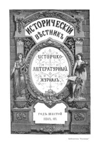 «Исторический вестник» - русский ежемесячный историко-литературный журнал. Издавался в Санкт-Петербурге с 1880-го по 1917 г. Журнал был основан А.С. Сувориным и С.Н. Шубинским с целью «знакомить читателей в живой, общедоступной форме с современным состоянием исторической науки и литературы в России и Европе». Вышло 150 тт. Каждый том состоял из трёх ежемесячных выпусков, имел свою нумерацию страниц, оглавление, список иллюстраций. Журнал приобрёл устойчивую популярность среди читателей, заняв прочное место в «триумвирате» русских исторических журналов наряду с «Русским архивом» и «Русской стариной». опережая их по количеству подписчиков. Отличием «Исторического вестника» было то, что он не помещал на своих страницах необработанных, сырых материалов. С другой стороны, журнал приближался по своему типу к журналам общелитературного образца, сочетая в себе коммерческий успех и доступное изложение материала.