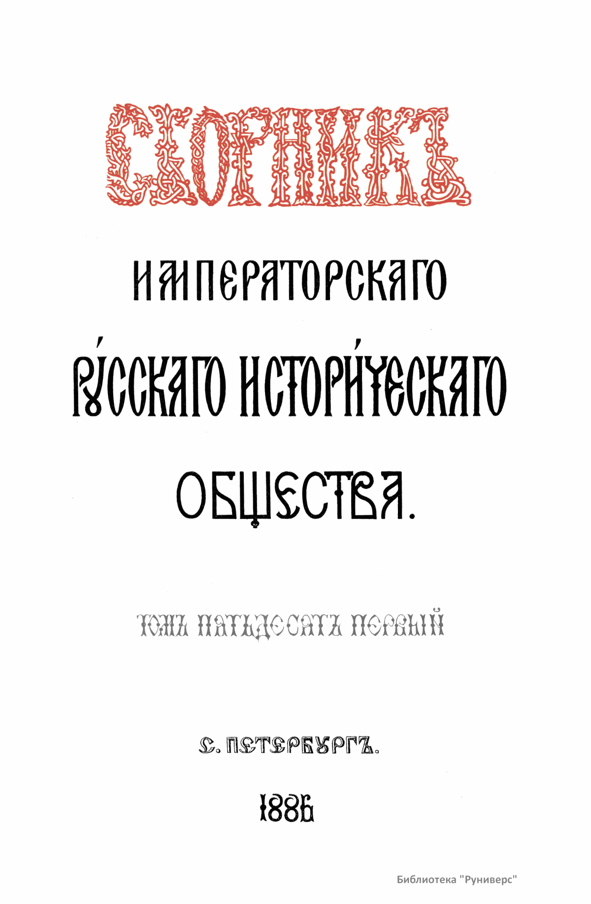 Сборникъ Русскаго историческаго общества. Томъ пятьдесятъ первый