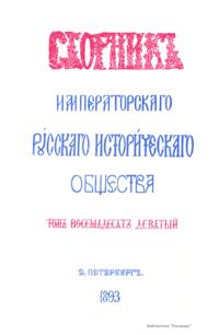 Сборникъ Русскаго историческаго общества. Томъ восемьдесятъ девятый