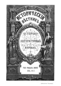 «Исторический вестник» - русский ежемесячный историко-литературный журнал. Издавался в Санкт-Петербурге с 1880-го по 1917 г. Журнал был основан А.С. Сувориным и С.Н. Шубинским с целью «знакомить читателей в живой, общедоступной форме с современным состоянием исторической науки и литературы в России и Европе». Вышло 150 тт. Каждый том состоял из трёх ежемесячных выпусков, имел свою нумерацию страниц, оглавление, список иллюстраций. Журнал приобрёл устойчивую популярность среди читателей, заняв прочное место в «триумвирате» русских исторических журналов наряду с «Русским архивом» и «Русской стариной». опережая их по количеству подписчиков. Отличием «Исторического вестника» было то, что он не помещал на своих страницах необработанных, сырых материалов. С другой стороны, журнал приближался по своему типу к журналам общелитературного образца, сочетая в себе коммерческий успех и доступное изложение материала.