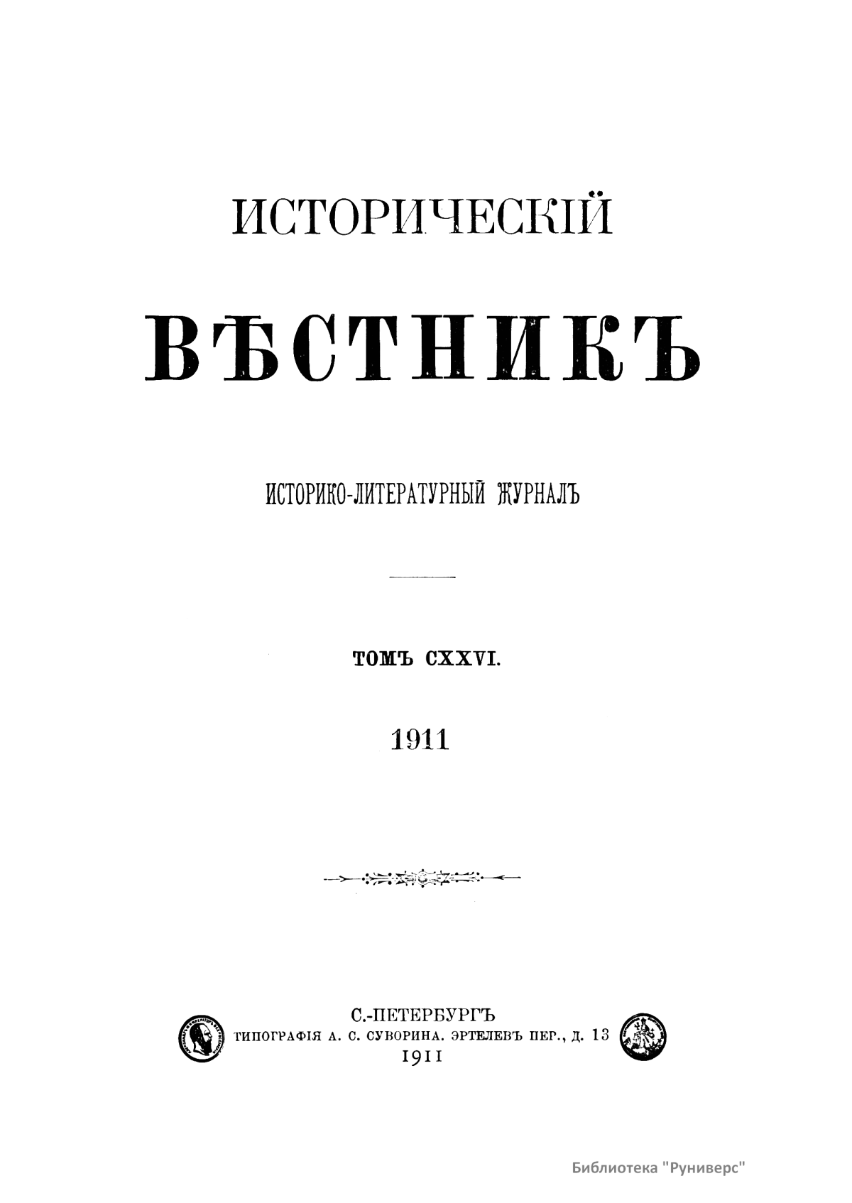 Исторический вестник. Историко-литературный журнал. Том CXXVI