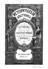 «Исторический вестник» - русский ежемесячный историко-литературный журнал. Издавался в Санкт-Петербурге с 1880-го по 1917 г. Журнал был основан А.С. Сувориным и С.Н. Шубинским с целью «знакомить читателей в живой, общедоступной форме с современным состоянием исторической науки и литературы в России и Европе». Вышло 150 тт. Каждый том состоял из трёх ежемесячных выпусков, имел свою нумерацию страниц, оглавление, список иллюстраций. Журнал приобрёл устойчивую популярность среди читателей, заняв прочное место в «триумвирате» русских исторических журналов наряду с «Русским архивом» и «Русской стариной». опережая их по количеству подписчиков. Отличием «Исторического вестника» было то, что он не помещал на своих страницах необработанных, сырых материалов. С другой стороны, журнал приближался по своему типу к журналам общелитературного образца, сочетая в себе коммерческий успех и доступное изложение материала.