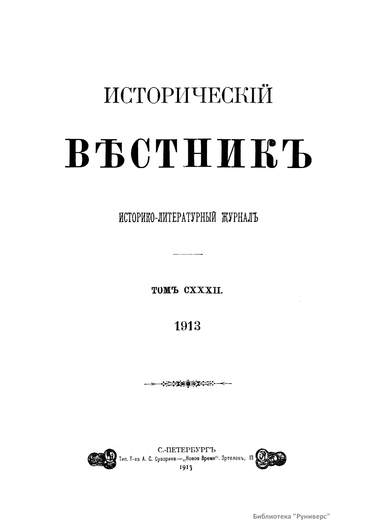 Исторический вестник. Историко-литературный журнал. Том CXXXII
