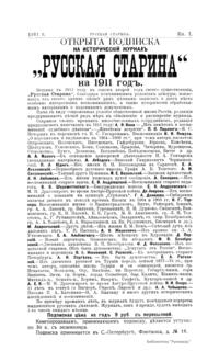 Русская старина. Томъ CXLV. 1911. Выпуски 1-3
