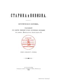 «Старина и новизна» — русский исторический сборник, издававшийся «Обществом ревнителей русского исторического просвещения в память императора Александра III». Сборник выходил в Петербурге в 1897–1904 и в Москве в 1904–1917 годах по мере накопления материала. Руководил изданием сборника граф С. Д. Шереметев (1844–1918) — историк, археолог, председатель «Общества», одного из первых объединений историков монархического направления. Члены общества способствовали изданию документов прошлого, содействуя развитию исторической науки и популяризации интереса к историческим материалам. «Старина и новизна» представляет собой собрание документальных материалов по русской истории и литературе XVII–XIX века. Вместе с Шереметевым в создании сборника участвовали блестящие историки А. П. и Н. П. Барсуковы, С. Ф. Платонов, Л. П. Майков и др.