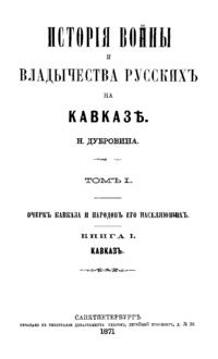 Сочинение Дубровина рисует картину завоевания русскими Кавказа, борьбу их с местным населением и времена наместничества. Подробно описаны не только военные события, но также быт и обычаи горных племен; жизнь их до принесения русских законов и после. Особенно тщательно выведены деяния наместников, даны многочисленные портреты персонажей эпохи покорения. События доведены до отставки Ермолова и назначения Паскевича.