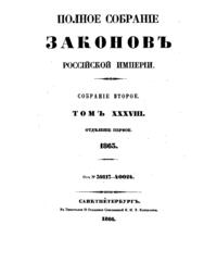 Полное собрание законов Российской Империи. Собрание Второе. Том XXXVIII. Отделение 1