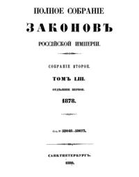 Полное собрание законов Российской Империи. Собрание Второе. Том LIII. Отделение 1