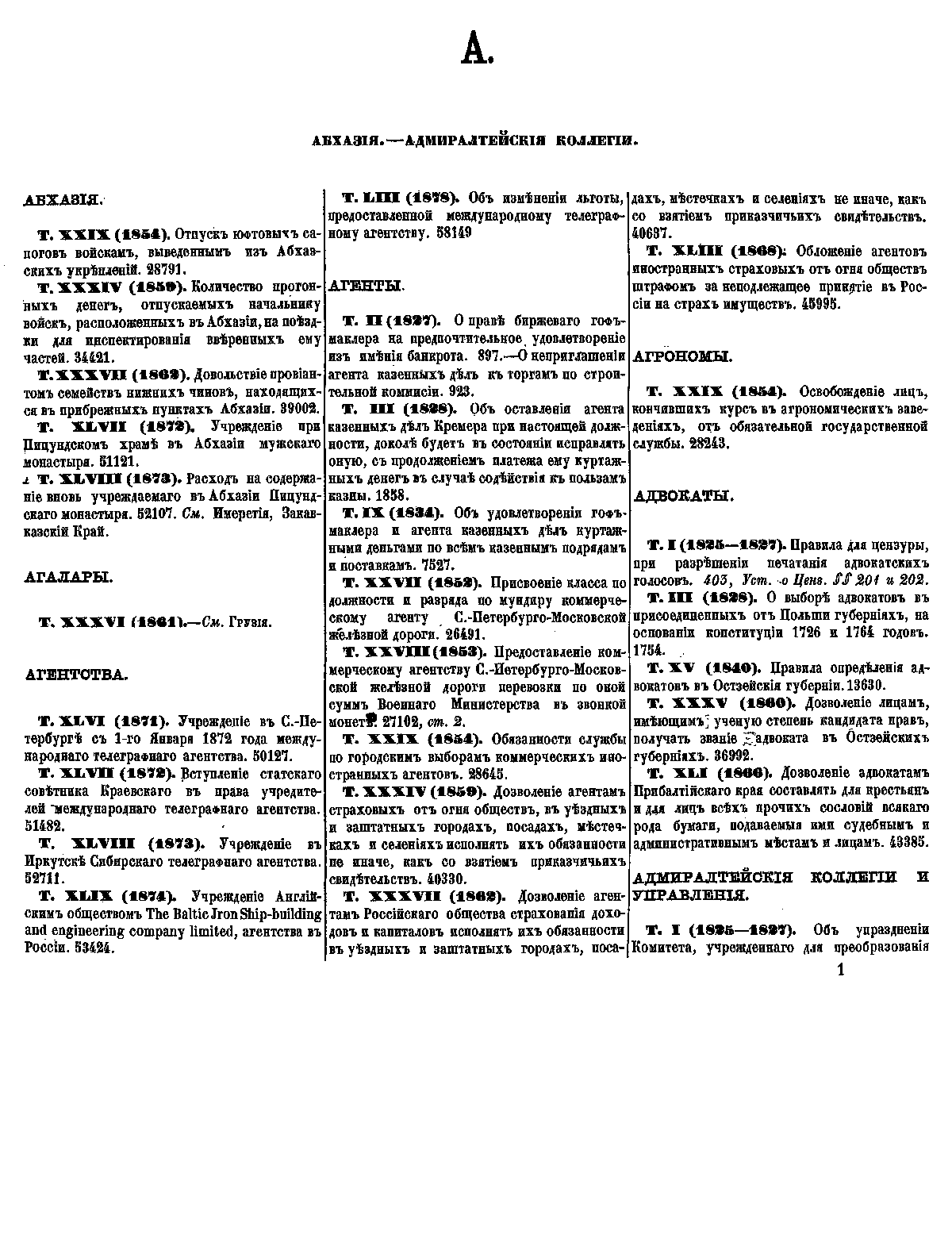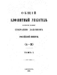Полное собрание законов Российской Империи. Общий алфавитный указатель. Том I