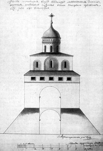 Золотые ворота во Владимире. Чертеж фон Берка и Гусева. 1779 год.