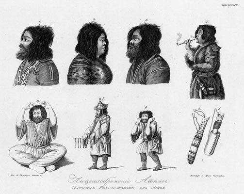Лицеизображение айнов. Гравюра середины 19 века