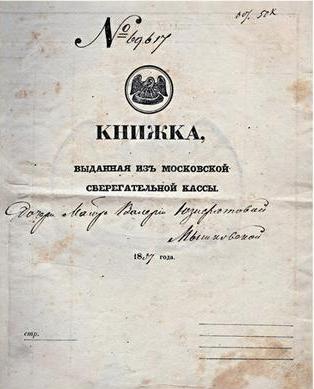 1841 год. 12 ноября (30 октября ст.ст.)вышел указ Николая I о создании первой в России сберегательной кассы. Открылась сберегательная касса 1 марта 1842 года в Санкт-Петербурге, в этом же году открылась касса и в Москве.