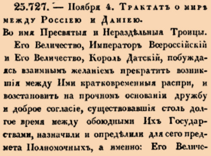 Трактат о мире между Россиею и Даниею. Во имя Пресвятыя и Нераздельныя Троицы.