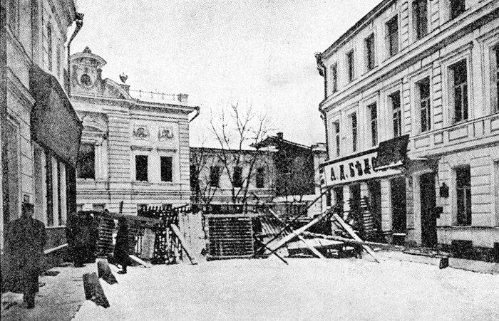 Баррикада на углу Арбата и Калошина переулка. Декабрь 1905 года