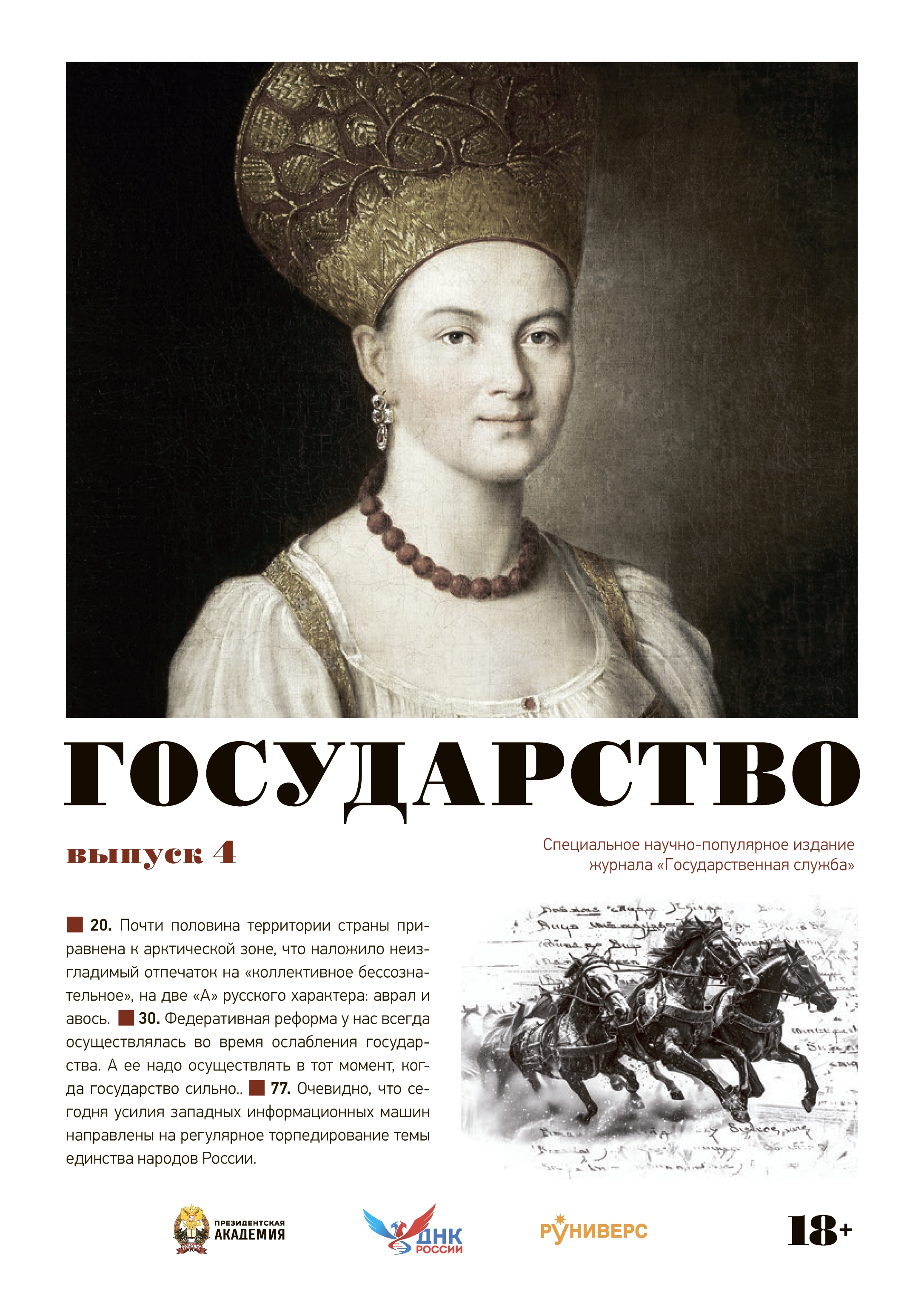 Четвертый выпуск издания «Государство» всецело посвящен вопросам национальной политики, цивилизационной идентичности и единства многонационального народа России. Выпуск приурочен к объявлению 2026 года Годом единства народов России.