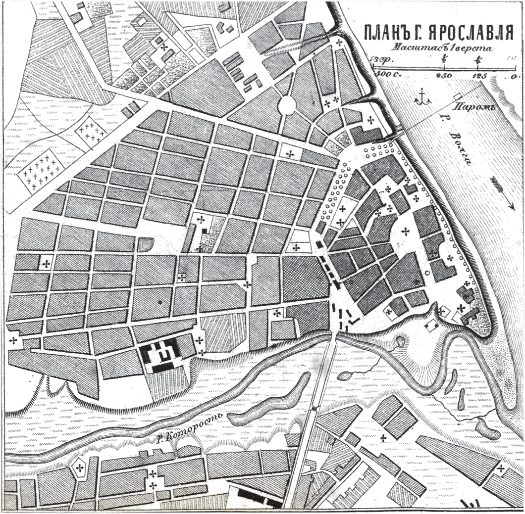 Источник: Ильин Алексей Афиногенович. Подробный атлас Российской Империи с планами главных городов. ― СПб., 1876 г. Деталь карты Ярославской губернии.