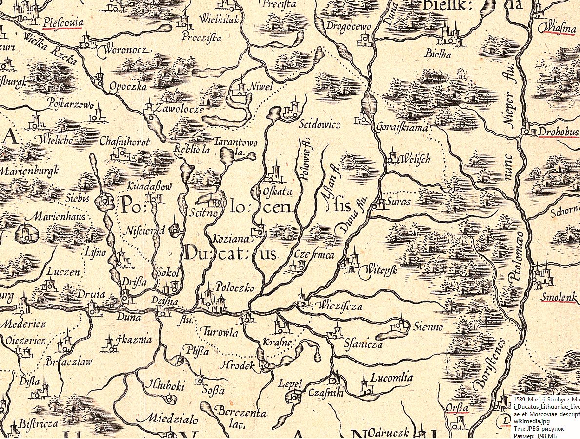 Фрагмент карты Мацея Струбича (Maciej Strubycz) «Magni Ducatus Lithuaniae, Livoniae et Moscoviae description», 1589