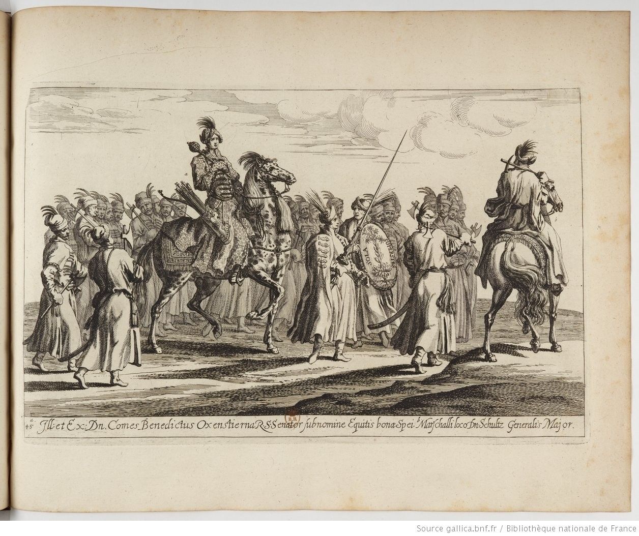 Вельможи в уборе офицеров польских гайдуков со свитой на торжественной «карусели», посвященной совершеннолетию Карла XI в 1672 г.