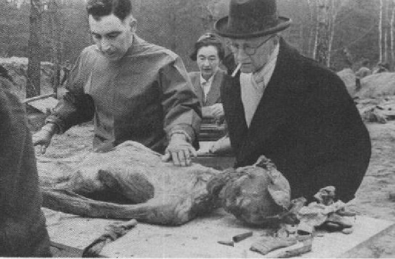Члены комиссии экспертов производят вскрытие (Ф. Навилль — слева)