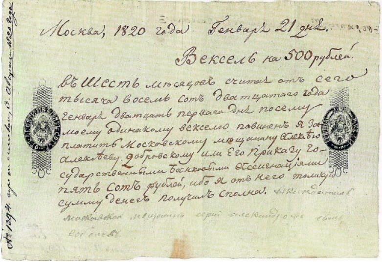 Образец векселя начала XIX века