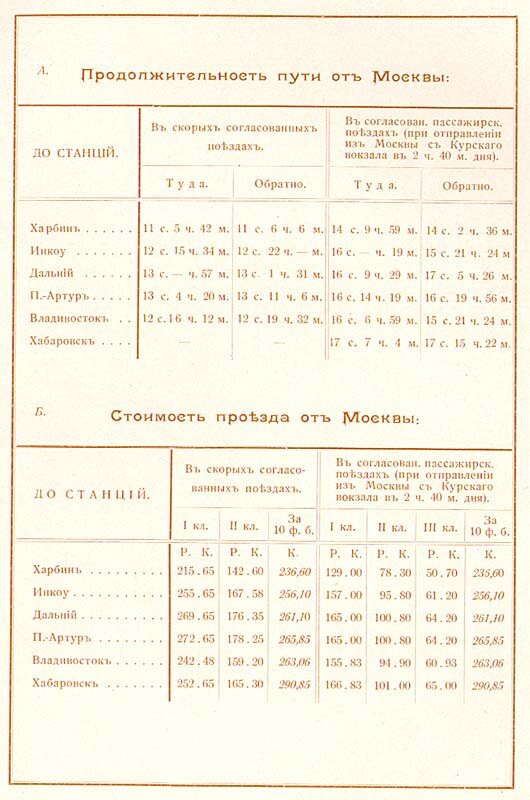 Продолжительность пути и стоимость проезда от Москвы