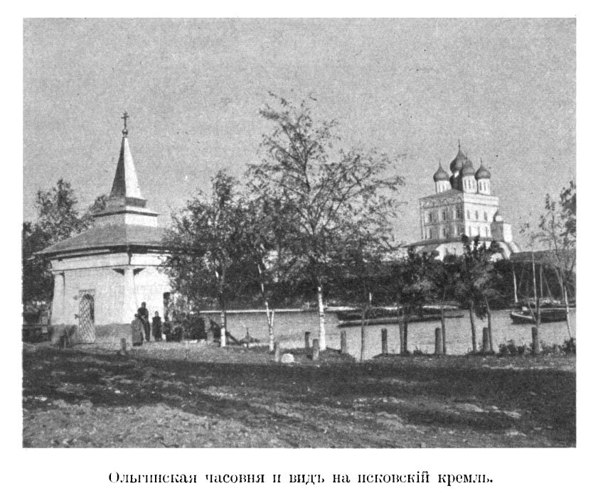 Ольгинская часовня и вид на псковский кремль