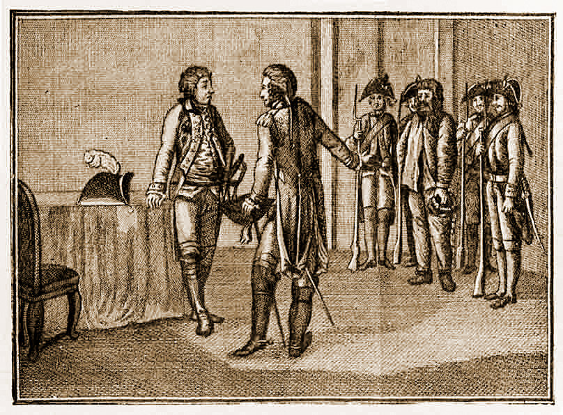Комендант Яицка полковник Иван Яковлевич Симонов передает Е.И. Пугачева А.В. Суворову 16 сентября 1774 года