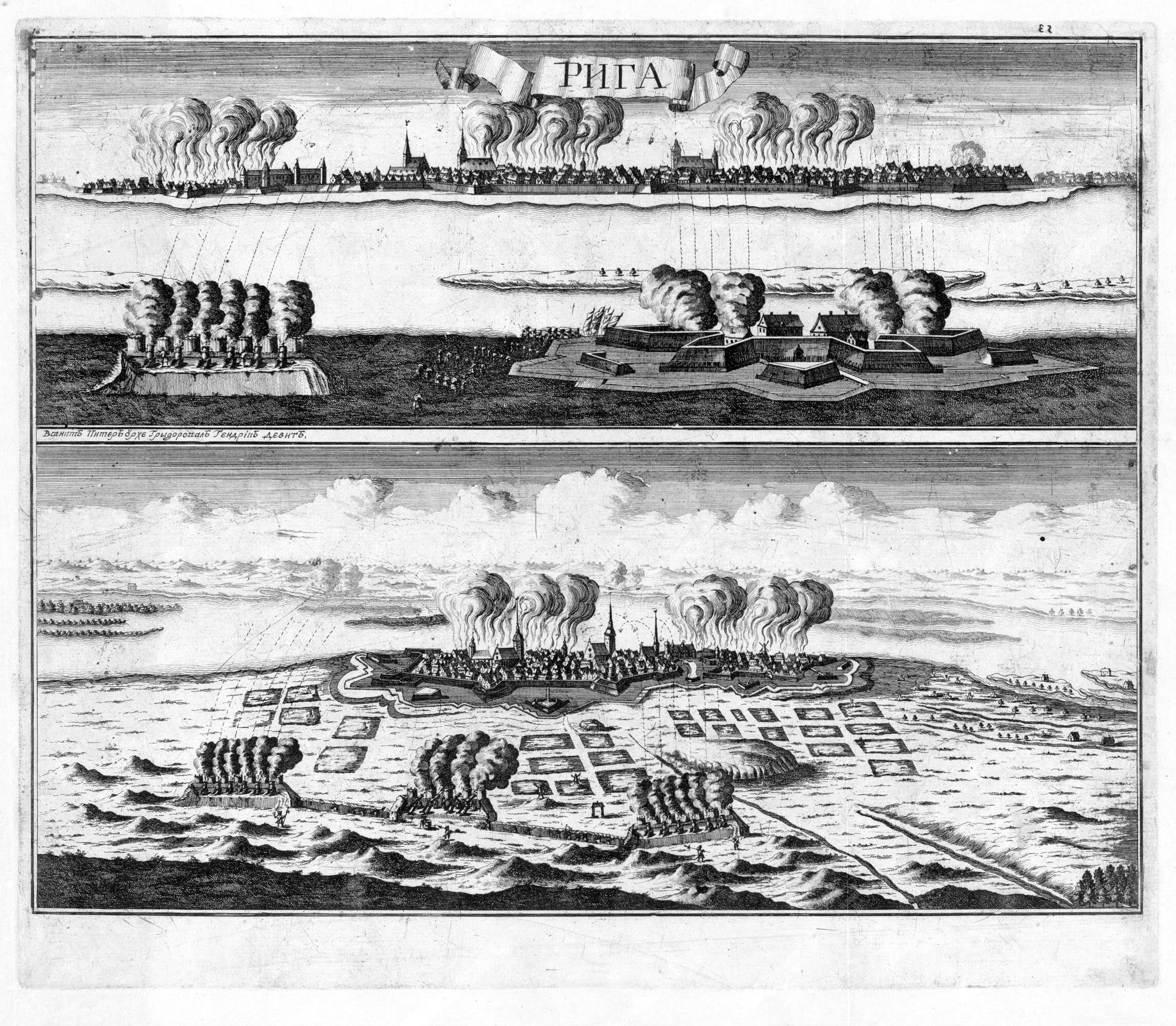 Вид и план осады Риги 14 июля 1710 года