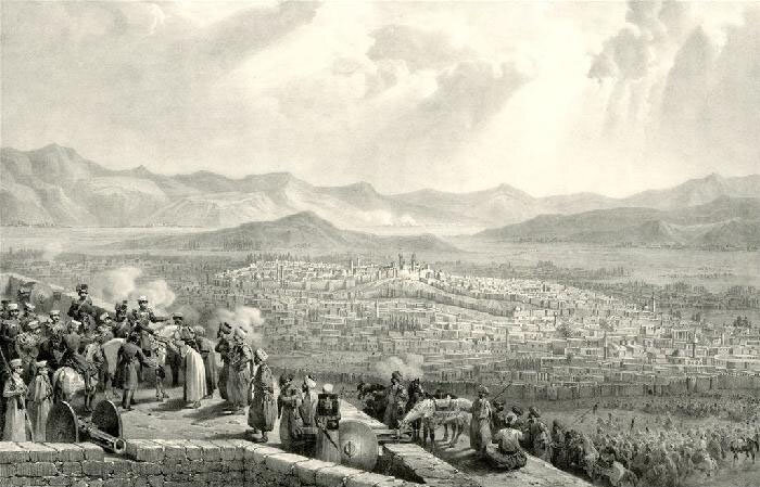 Оставив при подошве Топ-Дага лошадей, старшины и первые из городских Муфтиев и Кадиев , с видом истинной покорности, приблизились к Главнокомандующему. Старейший из них Аян-Ага, поднося Графу Паскевичу ключи города и крепости, в краткой речи изобразил чувства народа, совершенно предающегося на волю победителей; прося при том в их присутствии утвердить подписью условия капитуляции.