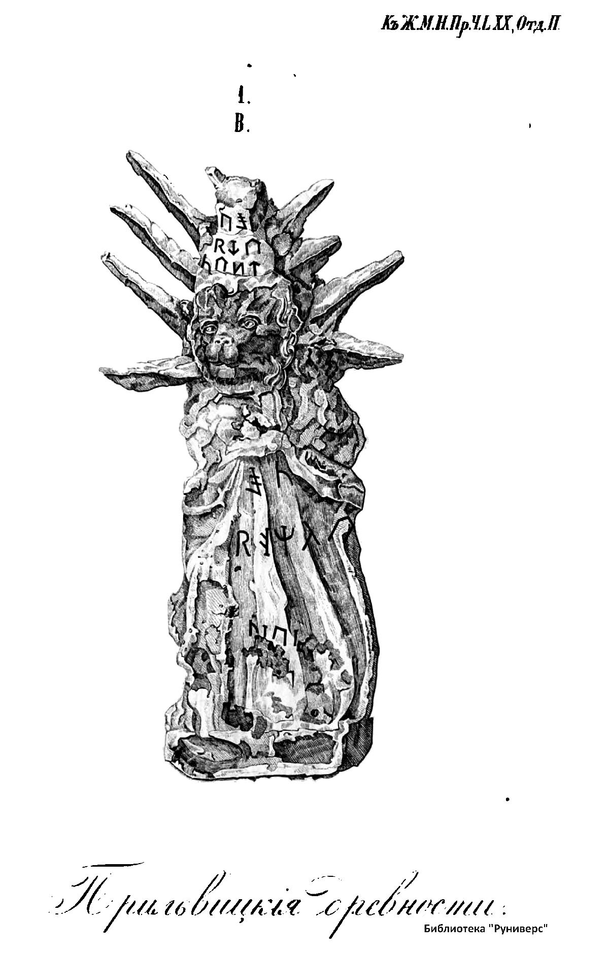 После долгих неудачных поисков в разных местах, где можно было искать развалины древней Ретры Пастору Фридриху Спонгольцу удалось вырыть в своем салу, в Прильвице (что между Нёйбранденбургом в Нёйстрелицем целый клад древностей полный котел разных вещей, покрытый другим котлом. В какой мере Пастор умел дорожить этой находкой — неизвестно; остается несомненным только то, что после него не осталось никаких заметок о найденном кладе, и что не только при его жизни, но и потом, спустя почти целое столетие (с 1680-х до 1760-х годов), этот замечательный клад оставался недоступным для археологов. Переходя из рук в руки, он достался в числе 46 нумеров доктору Гампелю, и только этот новый владетель известил ученый свет о сокровище, обещавшем важные результаты для науки. Описание, сделанное доктором Гампелем, было коротко, составлено наскоро; но и его было достаточно на первый раз, чтобы возбудить общее любопытство, — тем более, что вещи, упомянутые в описании, украшаясь руническими начертаниями имен божеств и города Ротры, становились в разряд памятников не только язычества, но и письменности прибалтийских Славян, подтверждая сказание Титмара, что в храме Ретрском на всех идолах названы были имена их. Открытие было так неожиданно и так важно, что мнения о ценности его тотчас разделились