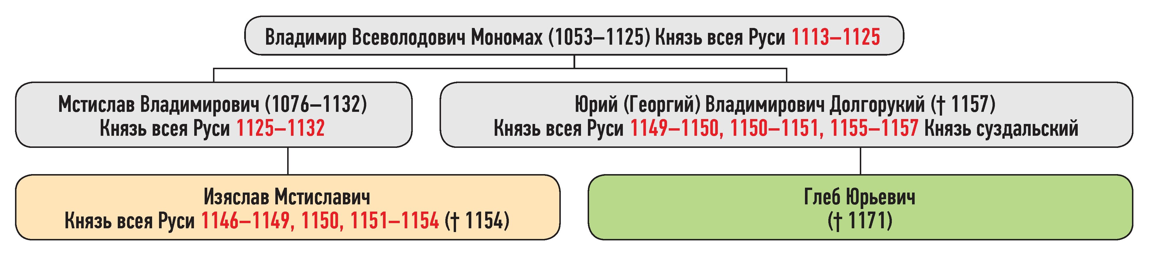 Глеб Юрьевич — сын Юрия Владимирович, Изяслав Мстиславич — сын Мстислава Владимировича