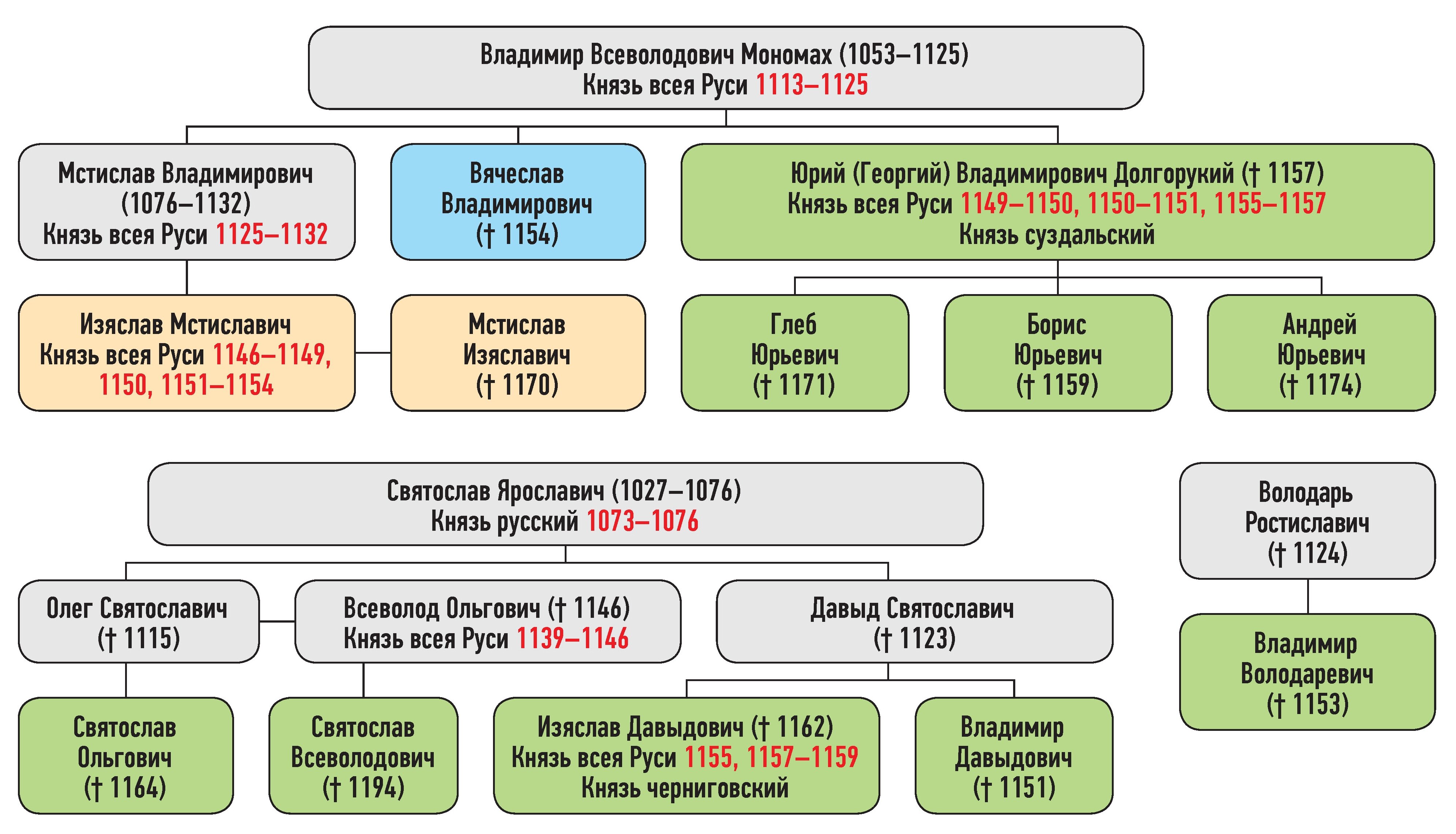 Генеалогическая схема к продолжению усобицы Изяслава Мстиславича и Юрия Владимировича в 1150 г.