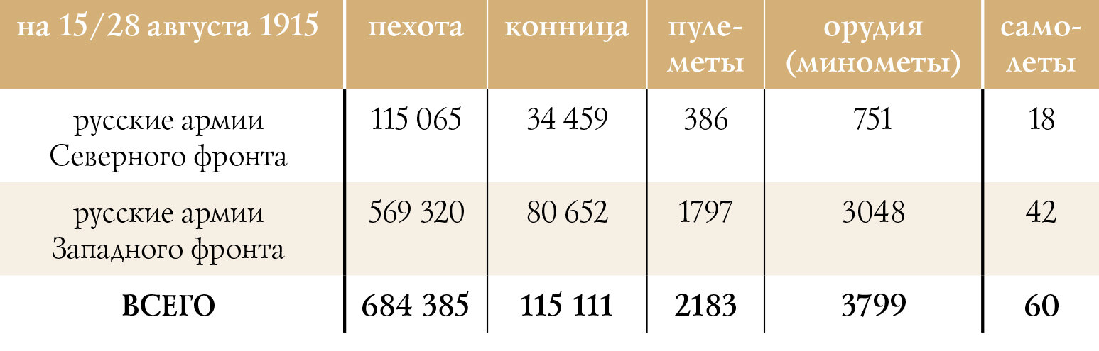 Боевой состав русских армий Северного и Западного фронтов в начале Виленской (Виленско-Двинской) операции 1915 г.